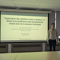 Le 20 octobre, Mael Gagnon Mailhot a soutenu avec succès sa thèse intitulée “Exploration des relations entre la douleur, le stress et la souffrance chez les personnes vivant avec de la douleur chronique” dans le cadre de son doctorat en psychologie.